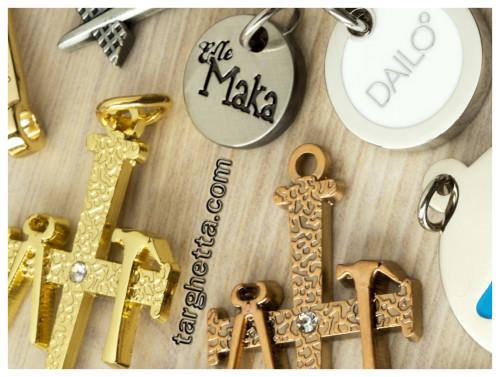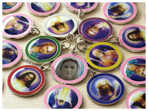 Realizziamo ciondoli o medagliette a tema religioso, con immagini di santi o loghi sacri.